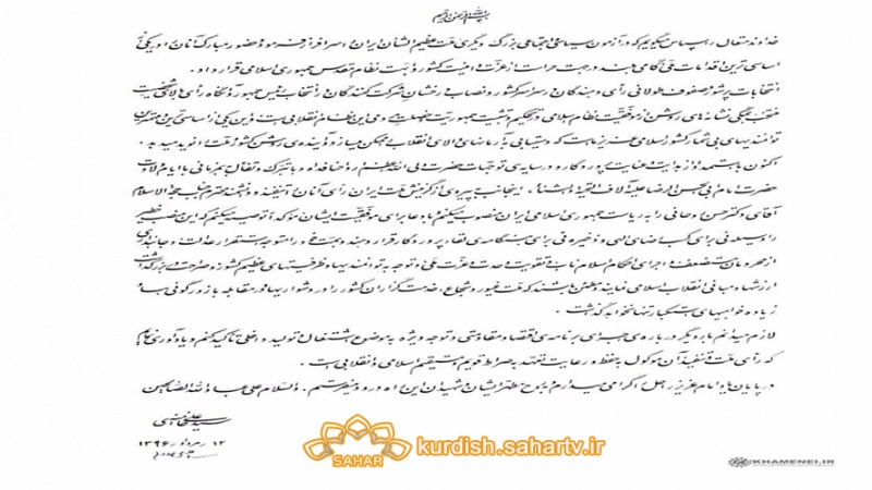 ڤیدیۆی کاتی بەخشینی حوکمی تەنفیز لە لایان ڕێبەری مەزنی ئینقلابی ئیسلامی بە سەرۆک کۆمار: