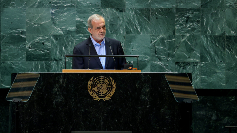 دوکتۆر مەسعود پزیشکیان" شەوی ڕابردوو لەمیانەی ٧٩هەمین کۆبوونەوەی ساڵانەی کۆگەی گشتی ڕێکخراوی نەتەوە یەکگرتوەکان وێڕای ڕاگەیاندنی ئەوەی کە خەڵکی ئازادیخوازی سەرانسەری جیهان بە دوژمنایەتی جولەکە تۆمەتبار دەکەن و لە هەڵوێستی و خۆڕاگری بەرامبەر بەخۆیان تۆمەتی ترۆریست بوون دەدەن وتیشی ڕژیمی زایۆنیست لە غەزە تووشی شکست هاتوەو هەربۆیە بەهۆی هەوڵ لەپێناو پەرەدان بە شەڕ ناتوانی ئەفسانەی لەشکان نەهاتوویی خۆی نۆژەن بکاتەوە.