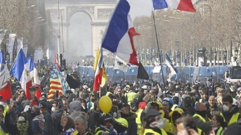سەدان کەس لە خەڵکی فەرەنسا بە خۆپیشاندان لە شەقامەکانی پاریس دژ بە ئیمانۆئێل مەکرۆنی سەرۆک کۆماری ئەم وڵاتە درووشمیان دا و خوازیاری ئەوە بوون کە واز لە پۆستی سەرۆک کۆماری بێنێ.