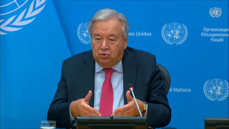 سکرتێری گشتیی نەتەوە یەکگرتووەکان بە ئاماژە بەوەی کە "پاش حەوتی ئۆکتۆبەر شاڵاوێکی خوێنڕشتن و تووند و تیژی تۆقێنەری وەڕێخستووە، وتی: ئێستا کات کاتی ئازادکردنی دەستبەسەرکراوانە. ئێستا کاتی لەدەنگخستنی تفەنگ و ڕاگرتنی ئەو ئازارەیە کە ناوچەکەی گرتۆتەوە. ئێستا کاتی ئاشتی، جێبەجێکردنی یاسا و ڕێسا نێودەوڵەتییەکان و دادگەرییە.