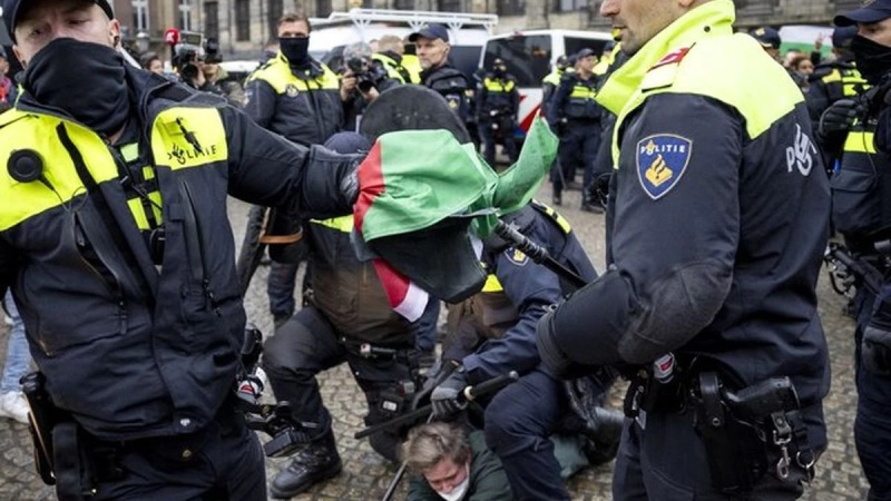 پۆلیسی دژی ئاژاوەنانەوەی ئامستردامی هۆلەند، ڕایگەیاند، پەنجا ناڕازیی لایەنگری غەززە دەسبەسەر کراون و ٣٤٠کەسیش بەتاوانی بەڕێوەبردنی خۆپێشاندانی ئاشتیانە بۆ ئازادکرانی فەلەستین لە ئامستردام دەرکراون.
