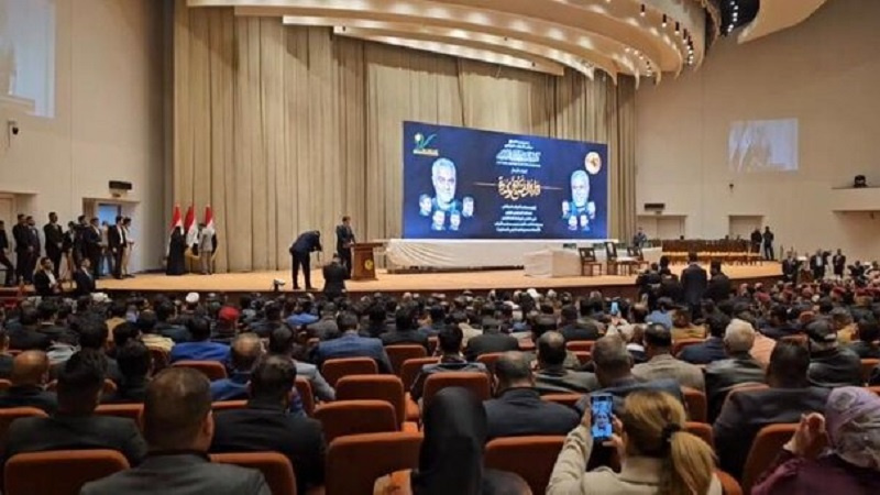 ڕێوڕەسمی یادی چوارەمین ساڵهاتی شەهادەتی سەردار سولەیمانی و ئەبوو مەهدی موهەندیس کرایەوە لە پەرلەمانی عێراق.