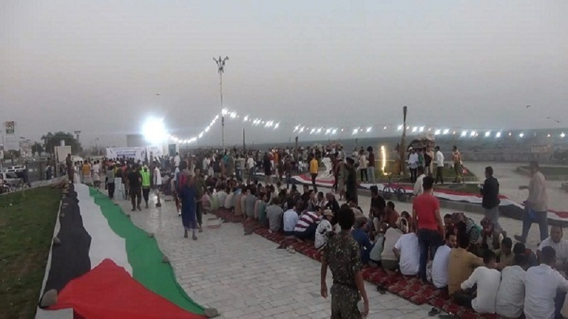 تاقمێک لە گەنجانی یەمەنی لە کەنارئاوی شاری "حودەیدە" لە رۆژاوای یەمەن، وێڕای بەڕێوەبردنی نەریتی بەربانگ کردنەوە، لەگەڵ خەڵکی ستەملێکراوی غەززەو خۆڕاگرییەکەی، هاودەنگیان دەربڕی.