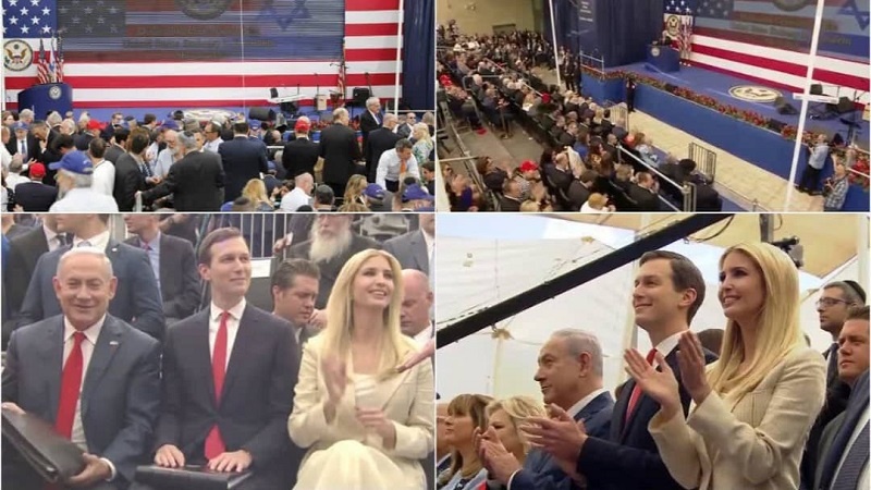 ڕێوڕەسمی گوێزرانەوە باڵوێزخانەی ئەمریکا لە تەلەبیب بۆ قودس لەکاتێکدا بەڕێوە چوو کە کوشتاری بەکۆمەڵی فەلەستینیان ئەنجامی گرتووە لەلایەن هێزەکانی رژیمی زایۆنیستی.