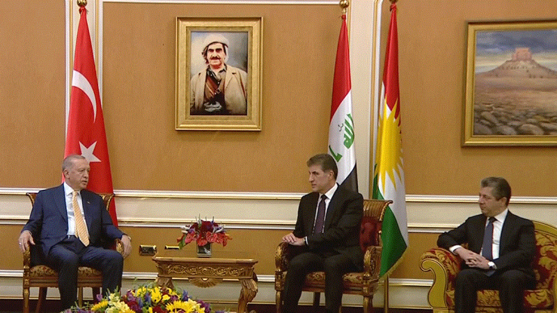 ئێواره‌ى ڕۆژی دوشه‌ممه‌ له‌ چوارچێوه‌ى سه‌ردانه‌که‌یدا بۆ عێراق، ڕه‌جه‌ب ته‌ییب ئه‌ردوغانی سه‌رۆک کۆمارى تورکیا هاوڕێ لەگەڵ شاندێکى یاوه‌رى، گه‌یشته‌ هه‌رێمى کوردستان و له‌ فڕۆکه‌خانه‌ى نێوده‌وڵه‌تیى هه‌ولێر له‌لایه‌ن نێچیرڤان بارزانى، سه‌رۆکى هه‌رێمى کوردستان، مه‌سرور بارزانى، سه‌رۆک وه‌زیران، قوباد تاڵه‌بانى جێگرى سه‌رۆک وه‌زیران و ژماره‌یه‌ک له‌ وه‌زیران و به‌رپرسانى باڵاى هه‌رێمى کوردستانه‌وه‌ پێشوازى لێکرا.