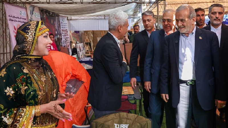 مەسعوود پزشکیان سەررۆک کۆماری ئێران ئەمڕۆ پێنجشەممە لە چوارچێوەی سەردانە یەک ڕۆژییەکەی بۆ بەندەر عەبباس لە باشووری ئێران سەردانی پێشانگای تواناکانی پارێزگای هۆرمۆزگانی کرد.