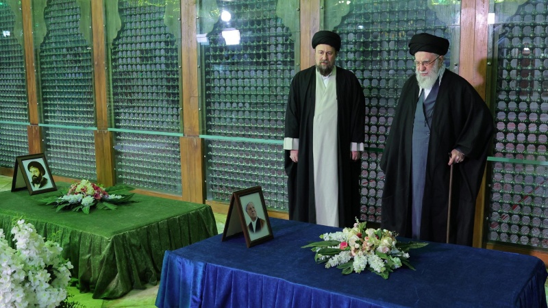 لە سەروبەندی دەیەی فەجر و چل و حەفتەمین ساڵوەگەڕی سەرکەوتنی شۆڕشی ئیسلامیی ئێران، ئایەتوڵڵا خامنەیی ڕێبەری مەزنی شۆڕش، بەرەبەیانی ئەمڕۆ شەممە (٣١ی کانوونی دووەمی ٢٠٢٦) لە مەزارگەی پیرۆزی ئیمام خومەینی (ر.ع) دامەزرێنەری مەزنی کۆماری ئیسلامیی ئێران ئامادە بوو.