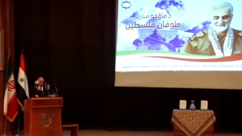 باڵوێزخانەی کۆماری ئیسلامیی ئێران لە دیمەشق بە بۆنەی چوارەمین ساڵڕۆژی شەهید بوونی سەردار حاج قاسم سولەیمانی، ڕێ و ڕەسمێکی بە ئامادەبوونی کاربەدەستانی سوریایی و نوێنەرانی خۆڕاگریی فەلستین بەڕێوە برد.